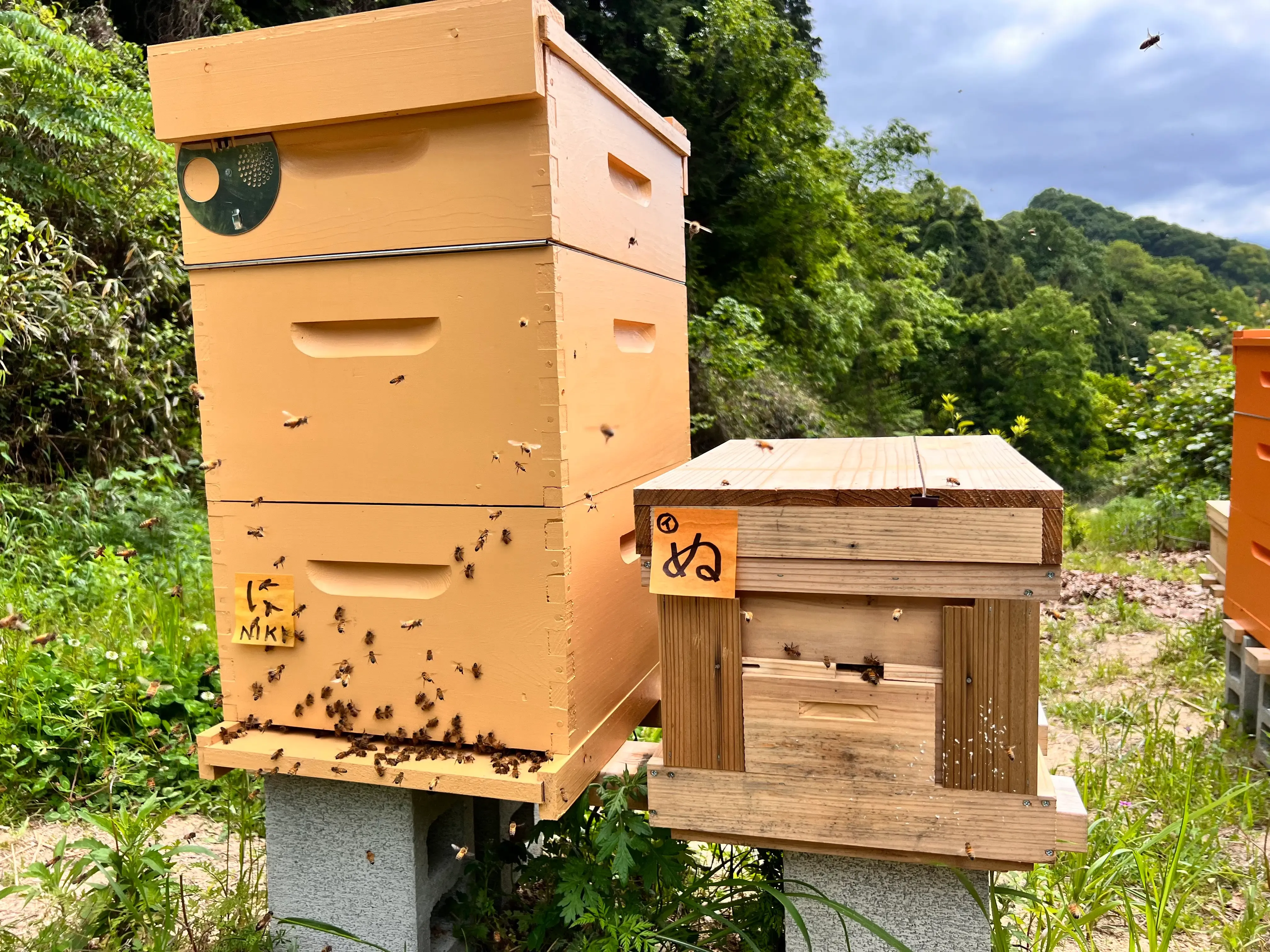 現在は松山市堀江町の「BeeCamp大城」と、自然栽培和泉農園さんの伊予柑畑の中「BeeCamp西谷」で養蜂しています。